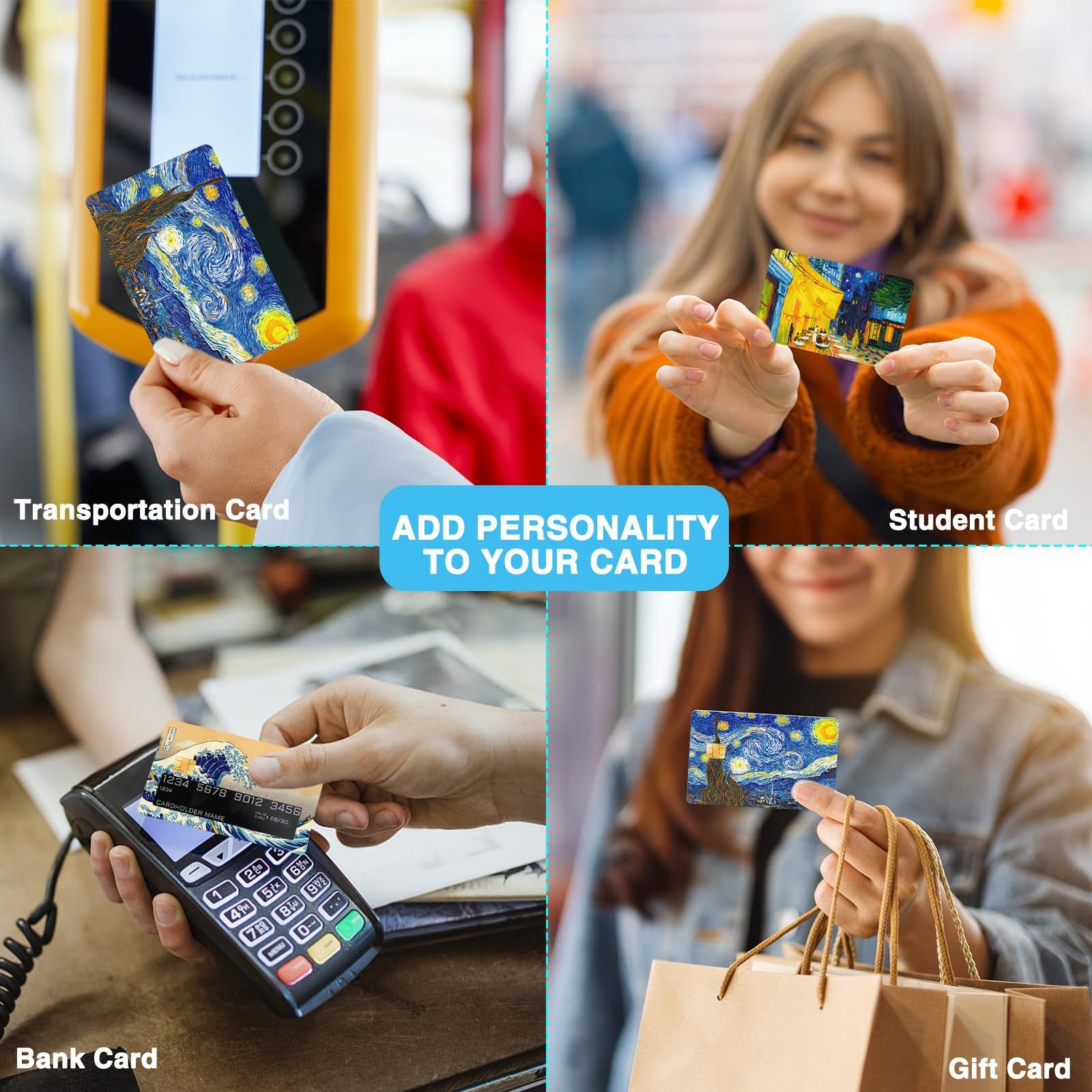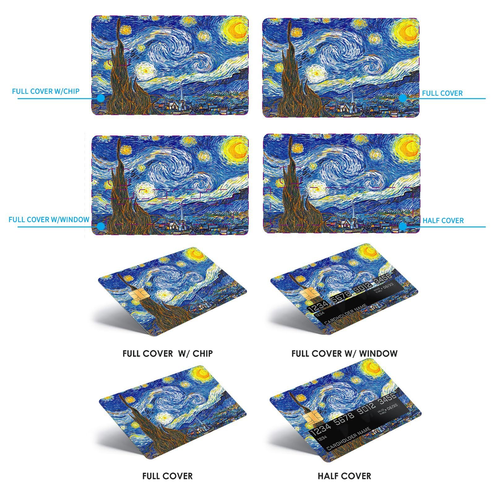 跨境名画系列信用卡个性化防水贴纸2×3.4英寸单张/套装可选