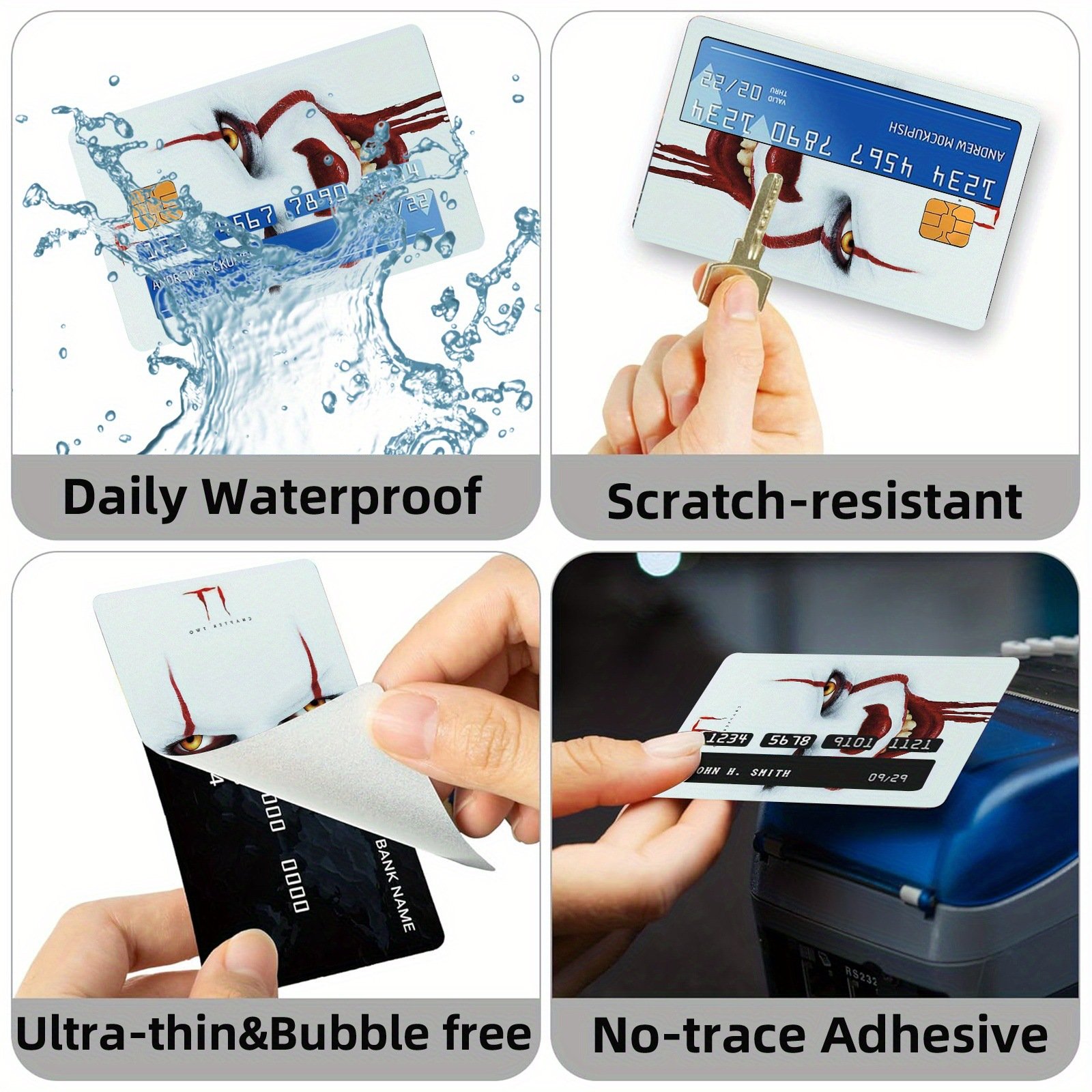 跨境新款小丑主题信用卡个性化防水贴纸2×3.4英寸单张/套装可选