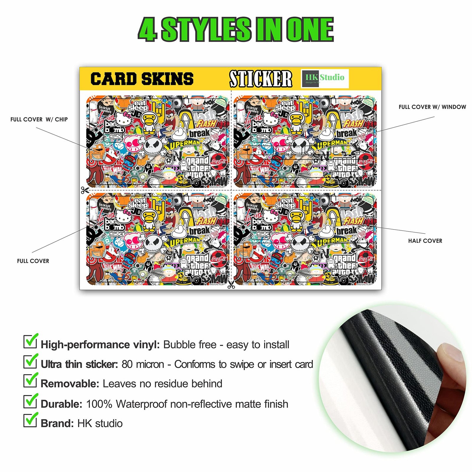 跨境涂鸦贴借记卡/信用卡个性化贴纸防水2×3.4 英寸单张/套装可选