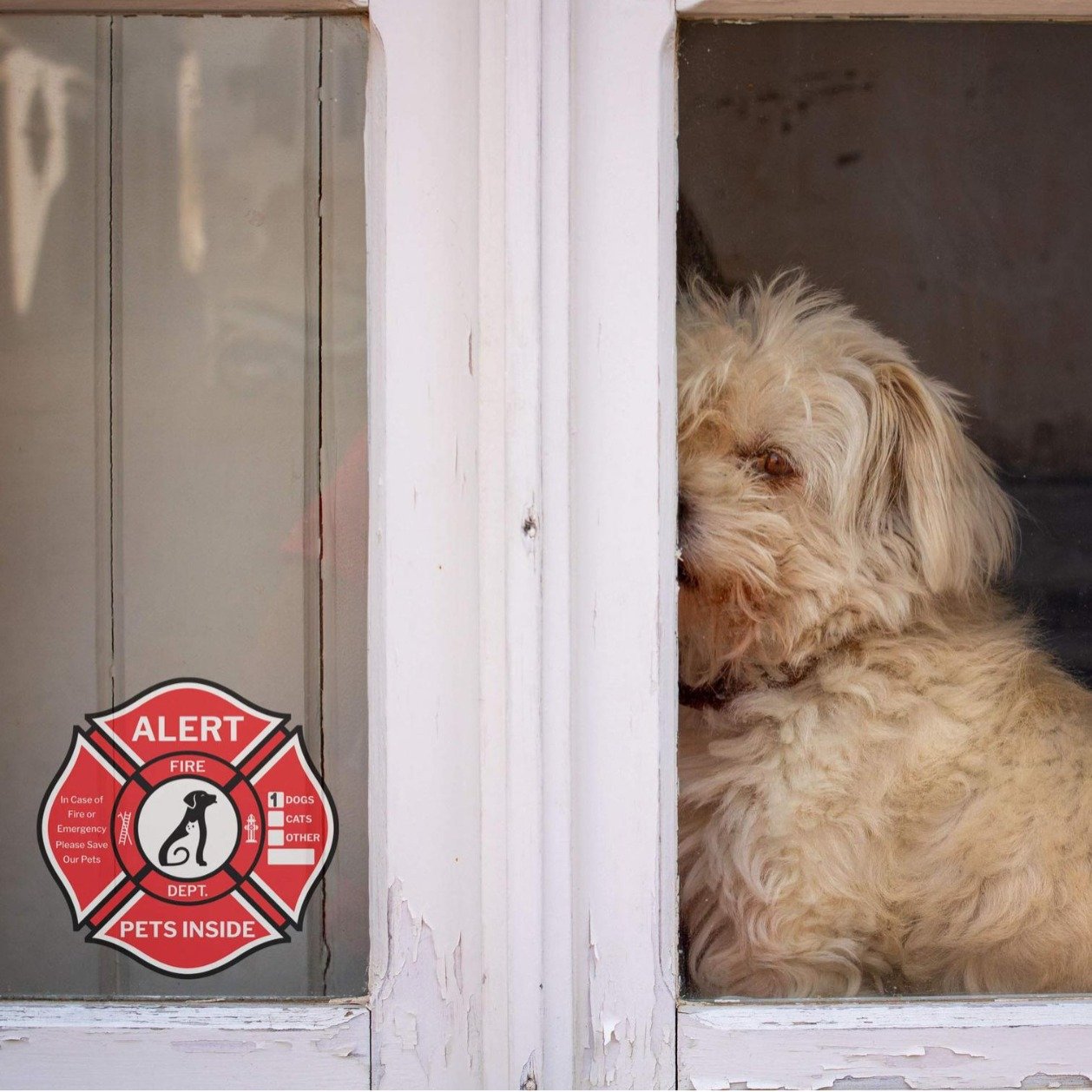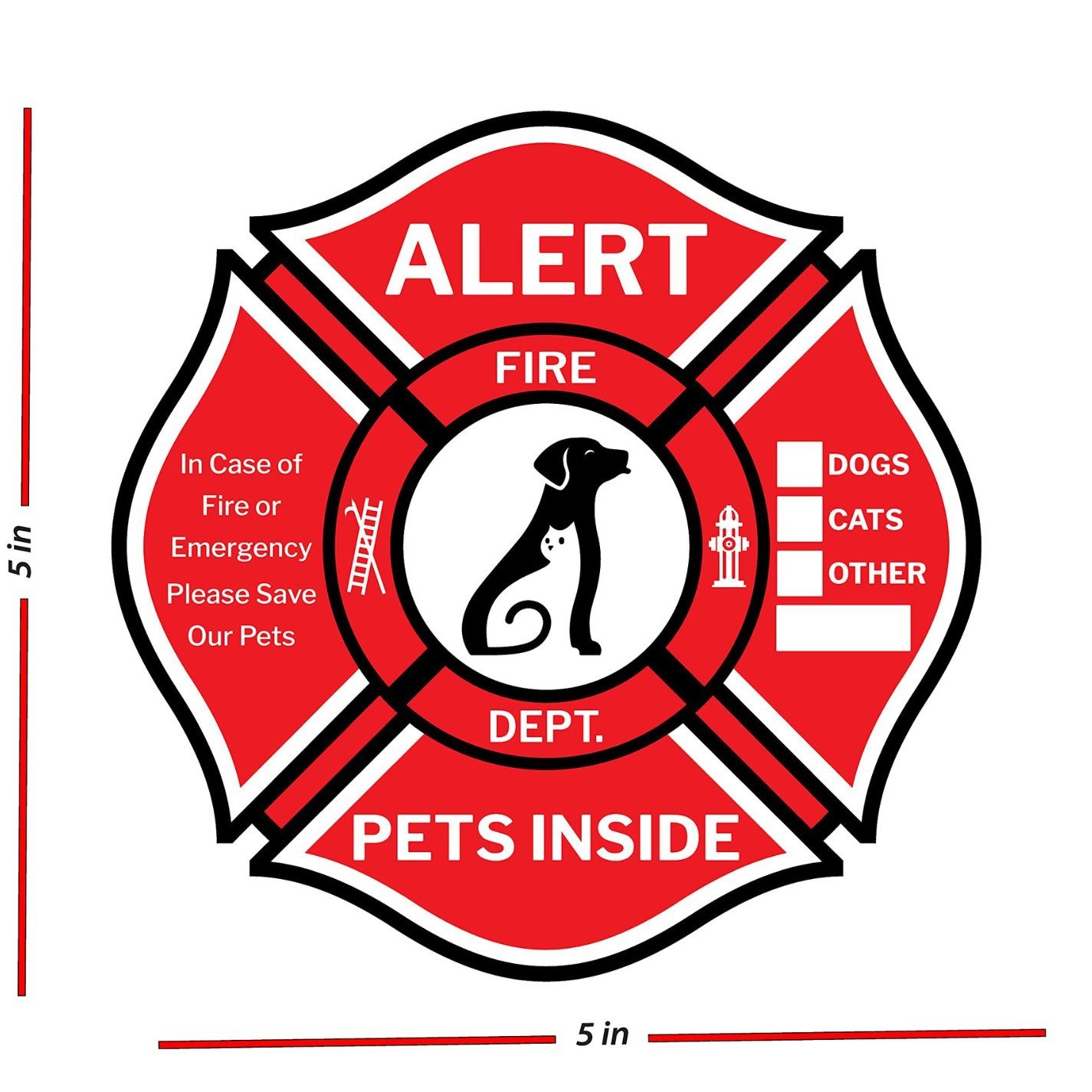 跨境 宠物救援警示贴纸 双面印刷可选 窗口双面救援贴 5×5 英寸
