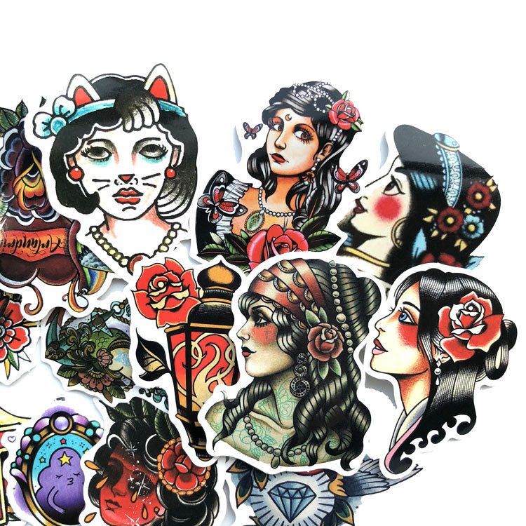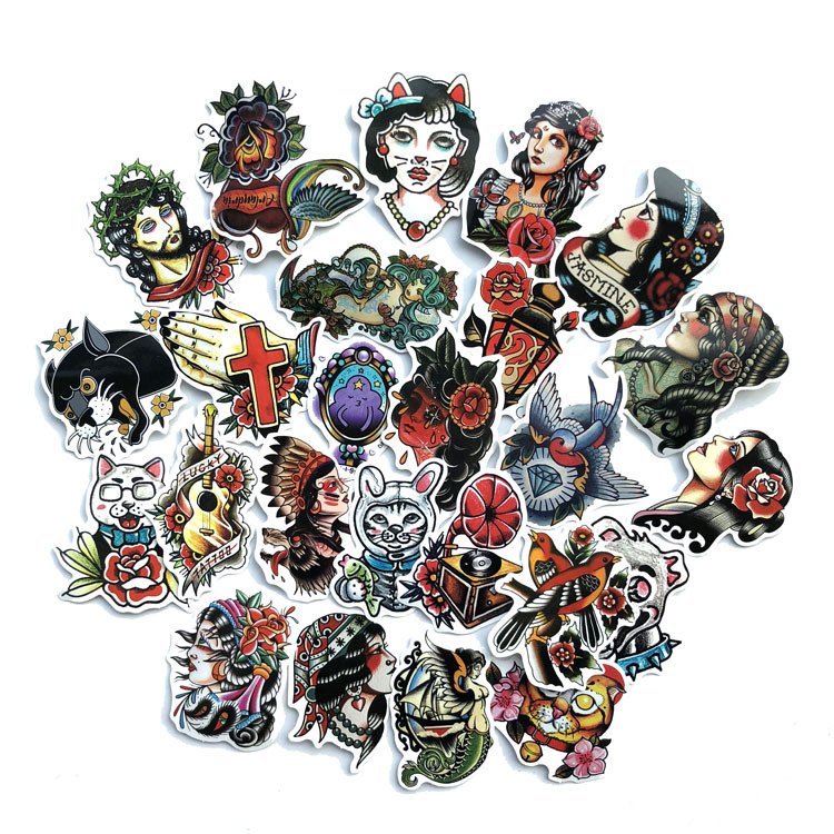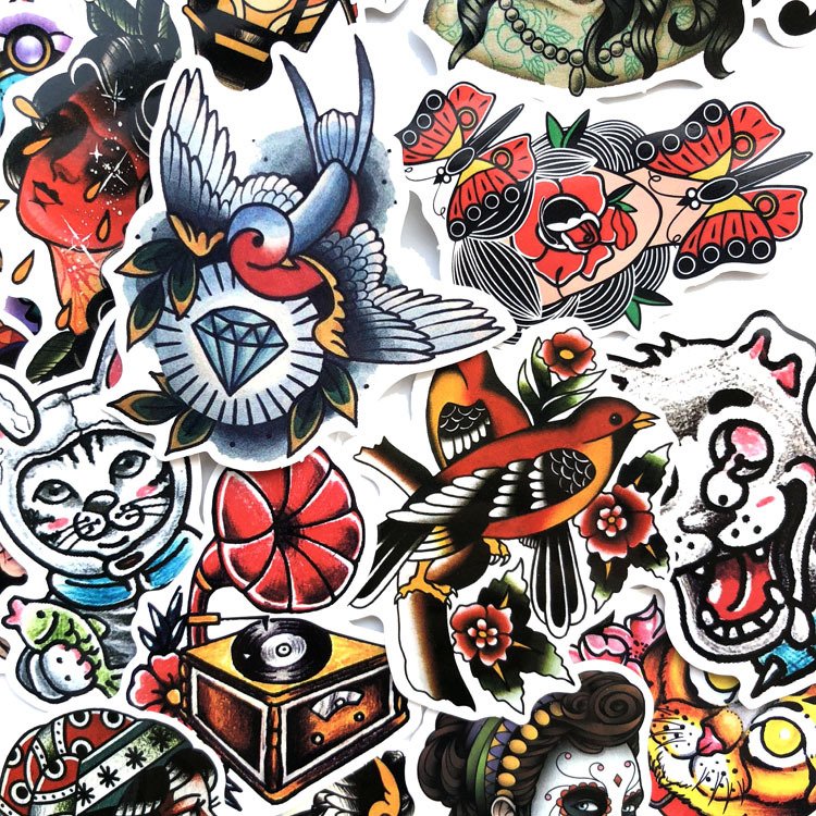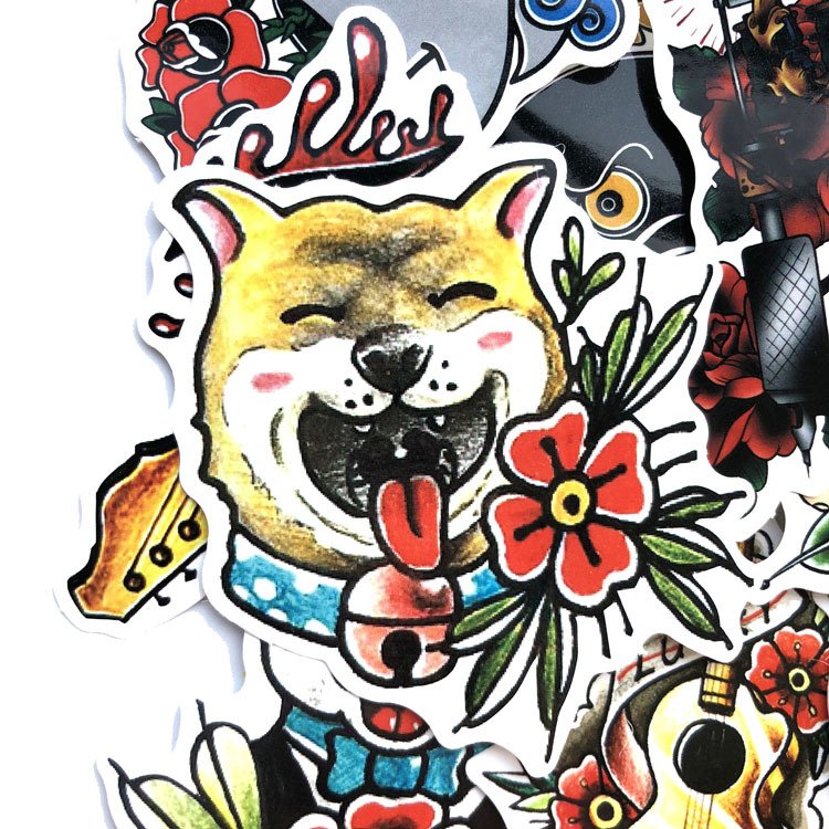 50 sheets/pack graffiti style Conservative tattoo luggage waterproof stickers color crafts retro guitar decorative stickers