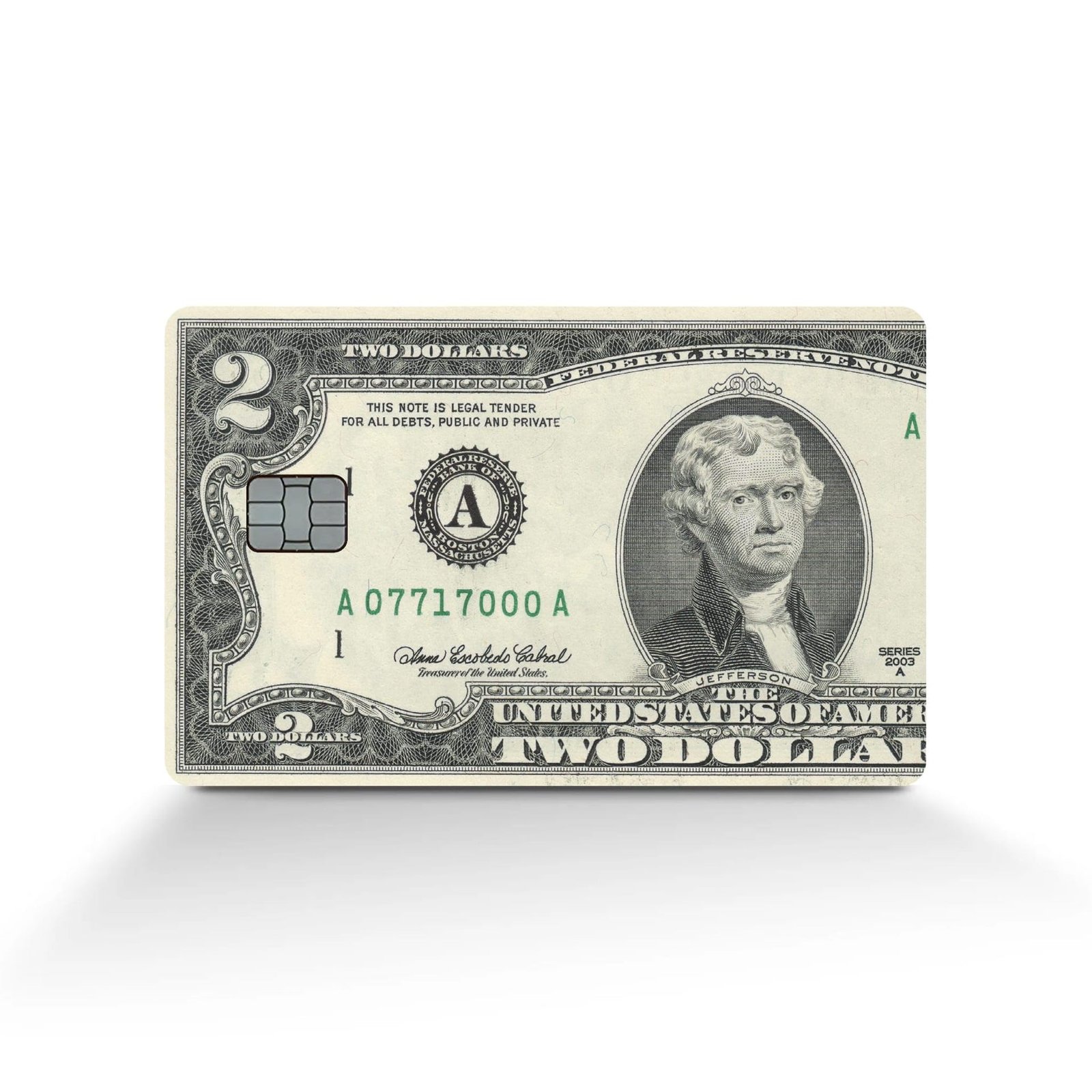跨境新款2美金纸币信用卡个性化防水贴纸2×3.4英寸单张/套装可选