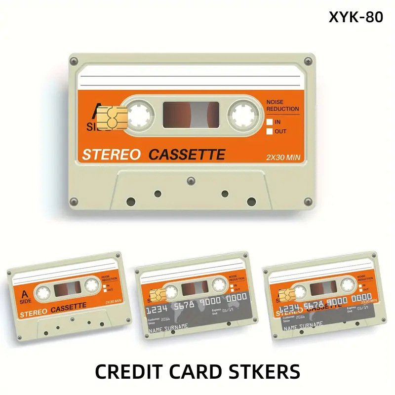 跨境老式磁带盒 信用卡个性化防水贴纸2×3.4英寸单张/套装可选