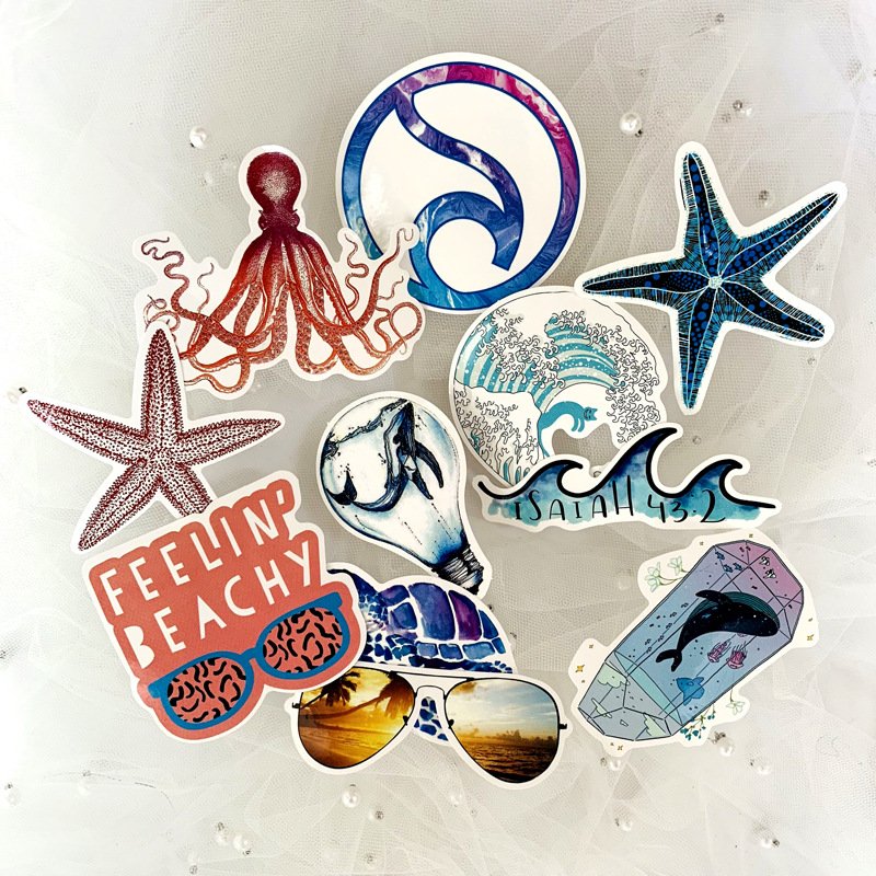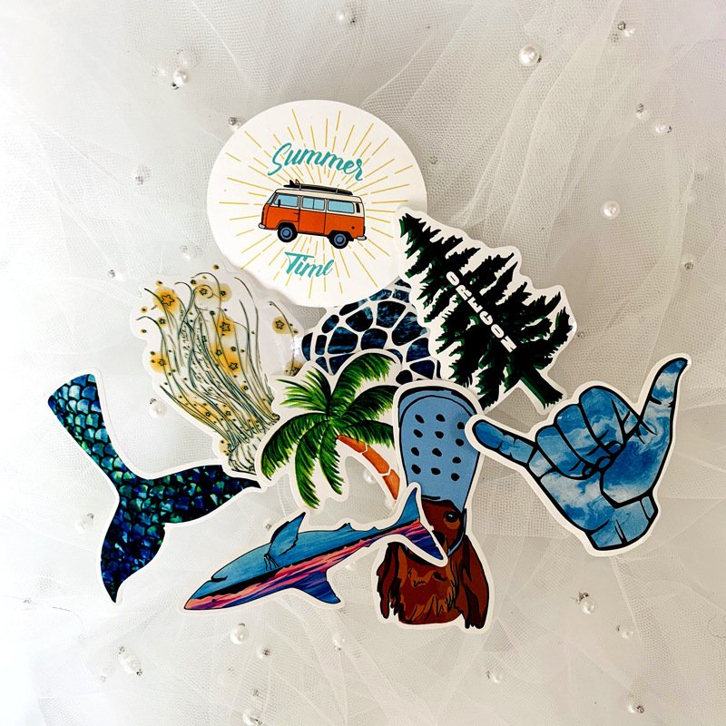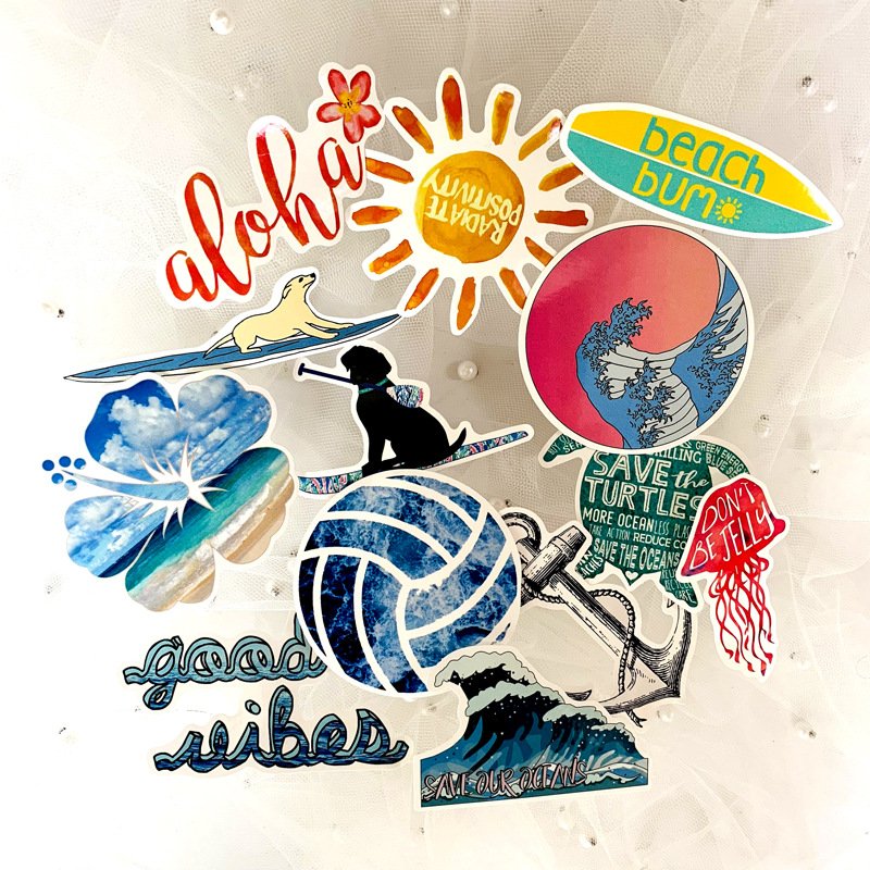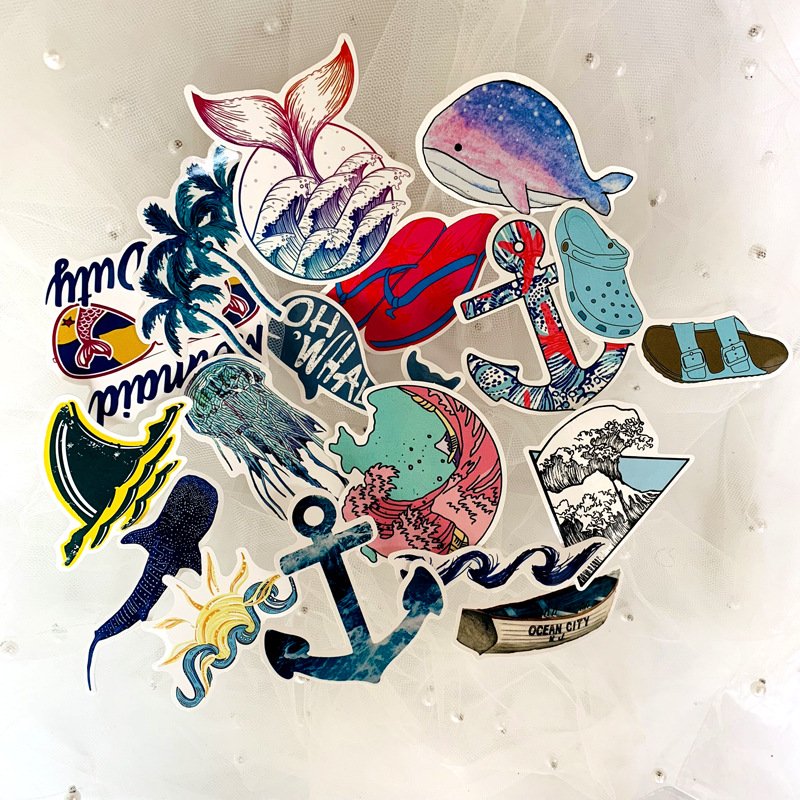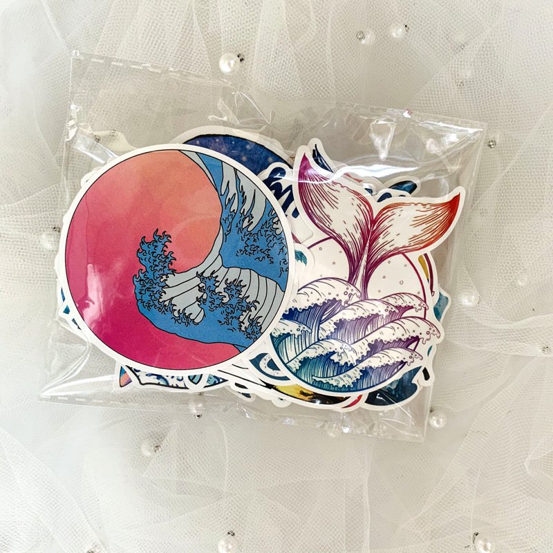 50 चादरें/पैक लहर समुद्र तट पर सर्फिंग कार्टून निविड़ अंधकार स्टिकर लगेज इलेक्ट्रिक कार स्केटबोर्ड पीवीसी कार स्टिकर