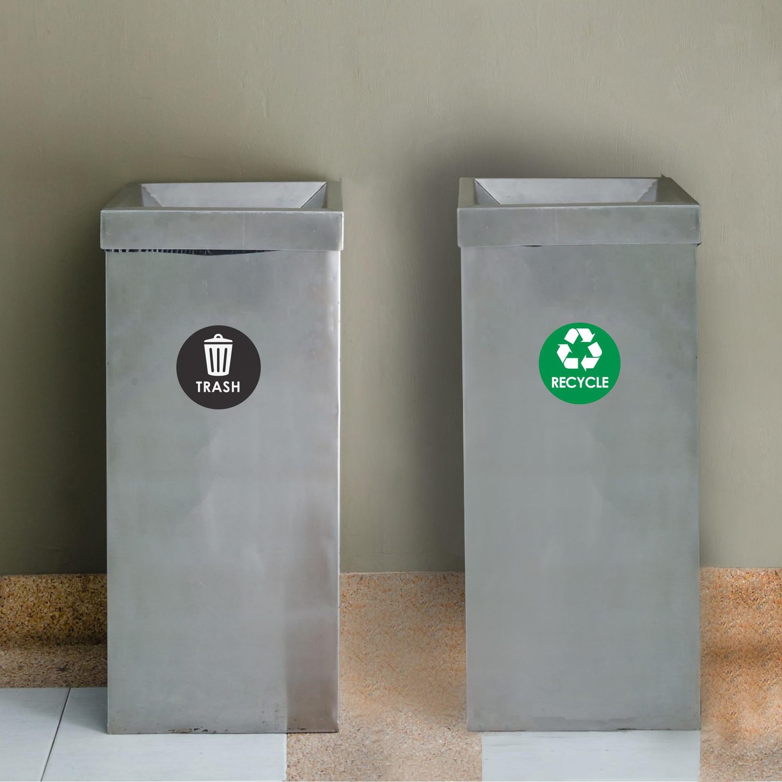 跨境垃圾回收标志贴纸6英寸圆形 Recycling & Trash Bin Stickers