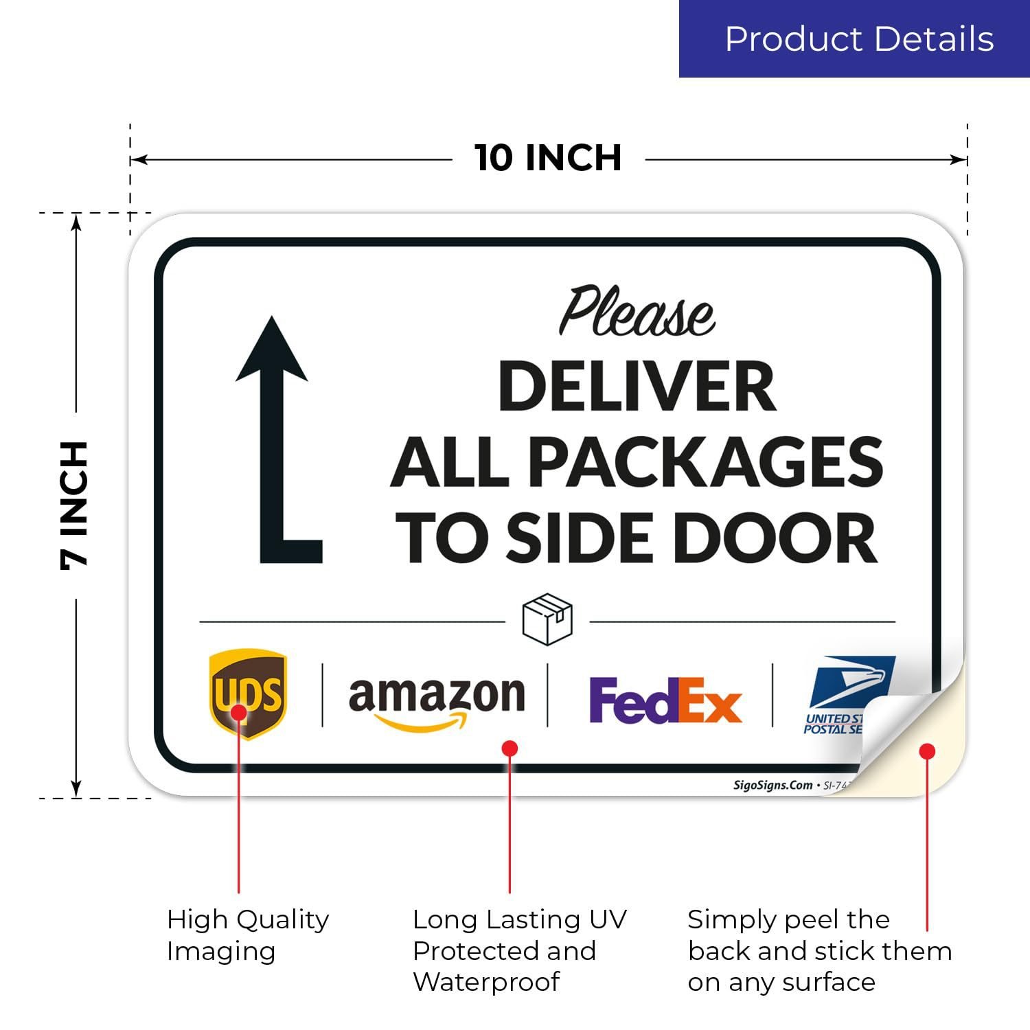 跨境美国包裹递送标志贴纸FedEx Amazon请送至左侧们说明贴10″x7″