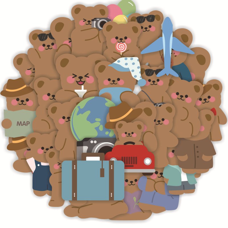 “50张棕色可爱小熊卡通儿童跨境贴画水杯头盔行李箱笔记本哑膜贴纸” の口コミを投稿します