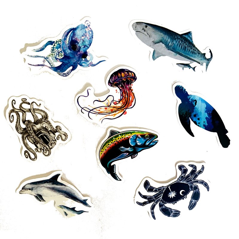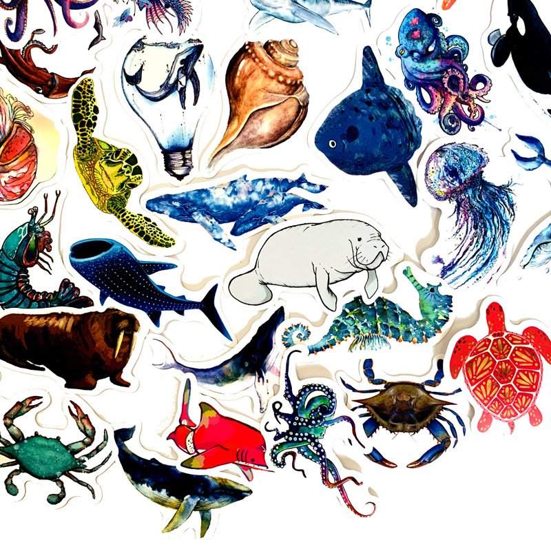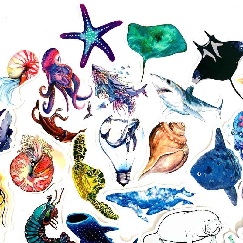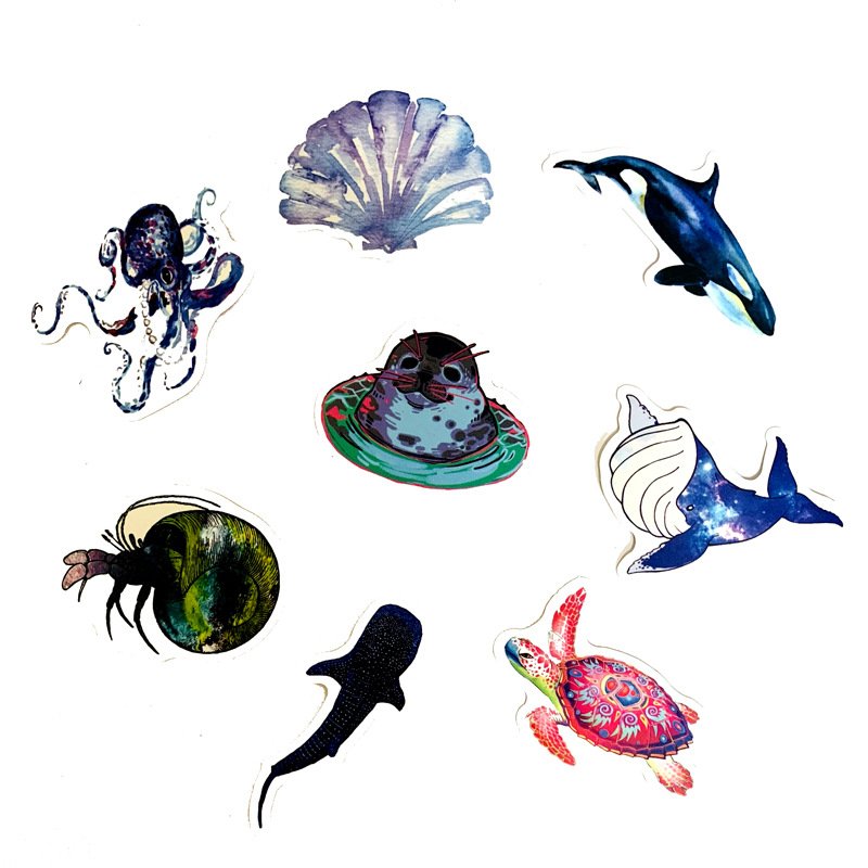 50枚/パックの漫画の海洋動物のステッカー給水カップヘルメットの荷物のノート防水マット薄膜電車ステッカー