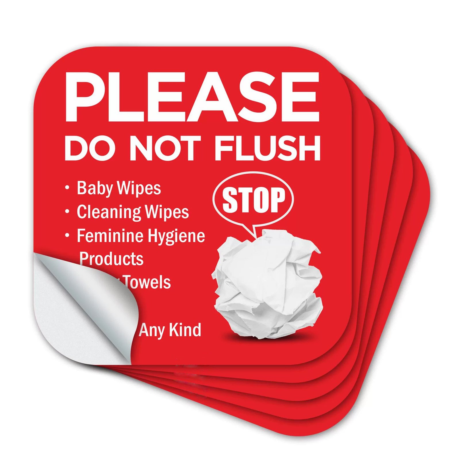 北美跨境请勿冲洗警告贴纸禁止冲除厕纸以外的任何东西 6×6英寸