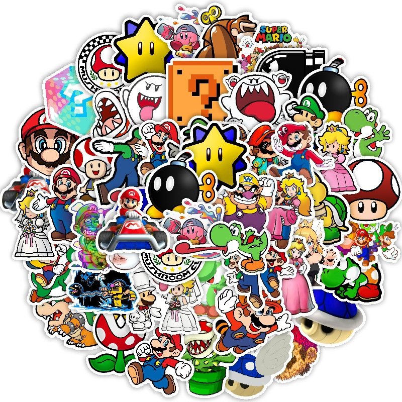 50张/包卡通日漫玛丽马里奥涂鸦文具水杯行李箱笔记本PVC贴纸