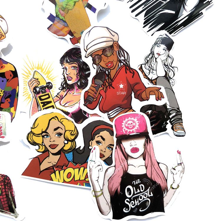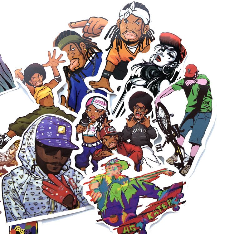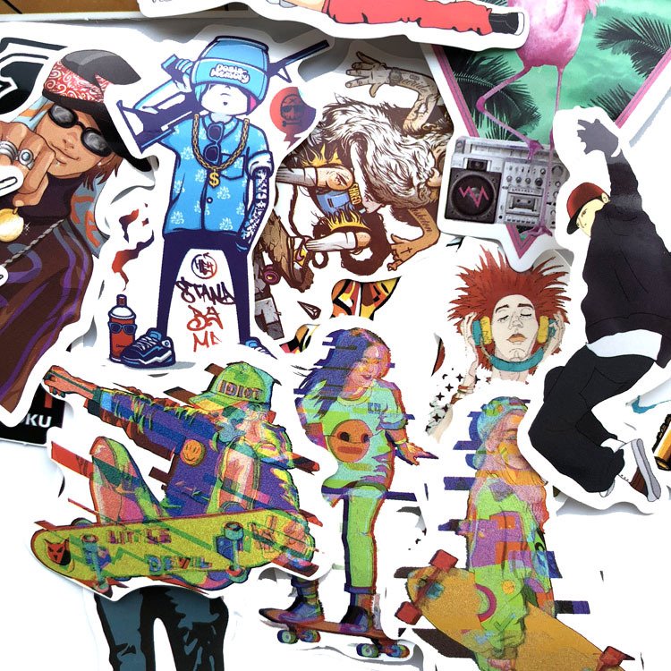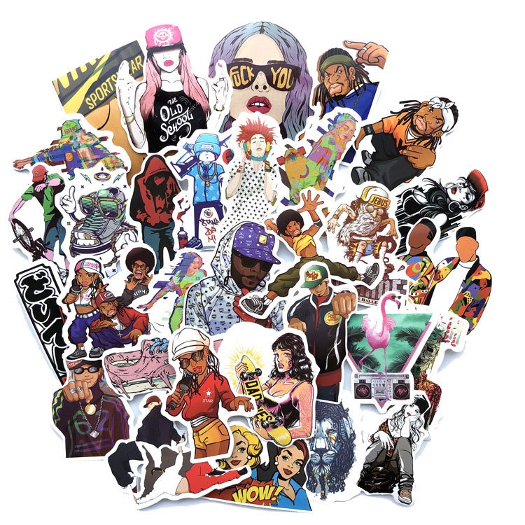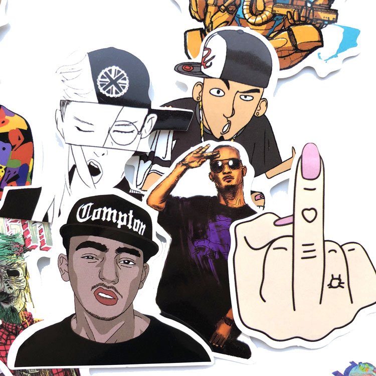 50张/包嘻哈风说唱玩滑板涂鸦贴纸防水拉杆箱个性潮流贴画不重复