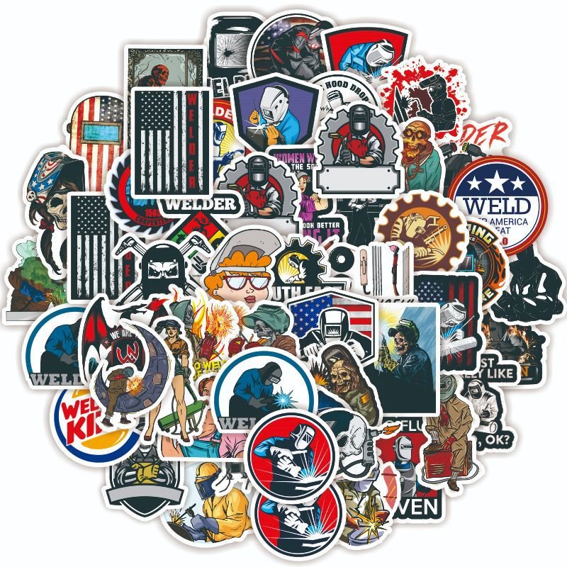 50张/包外贸卡通涂鸦焊接工人贴纸水杯行李箱文具笔记本哑膜贴纸