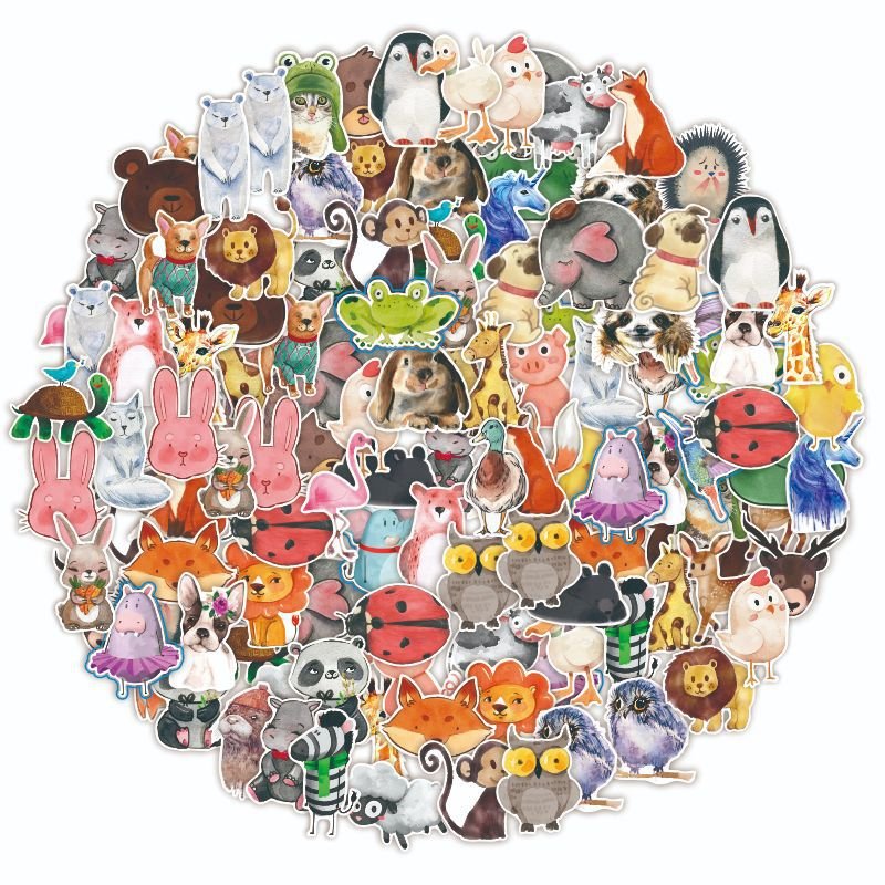 50张/包新款水墨风卡通水彩系列涂鸦贴笔记本汽车冰箱贴纸