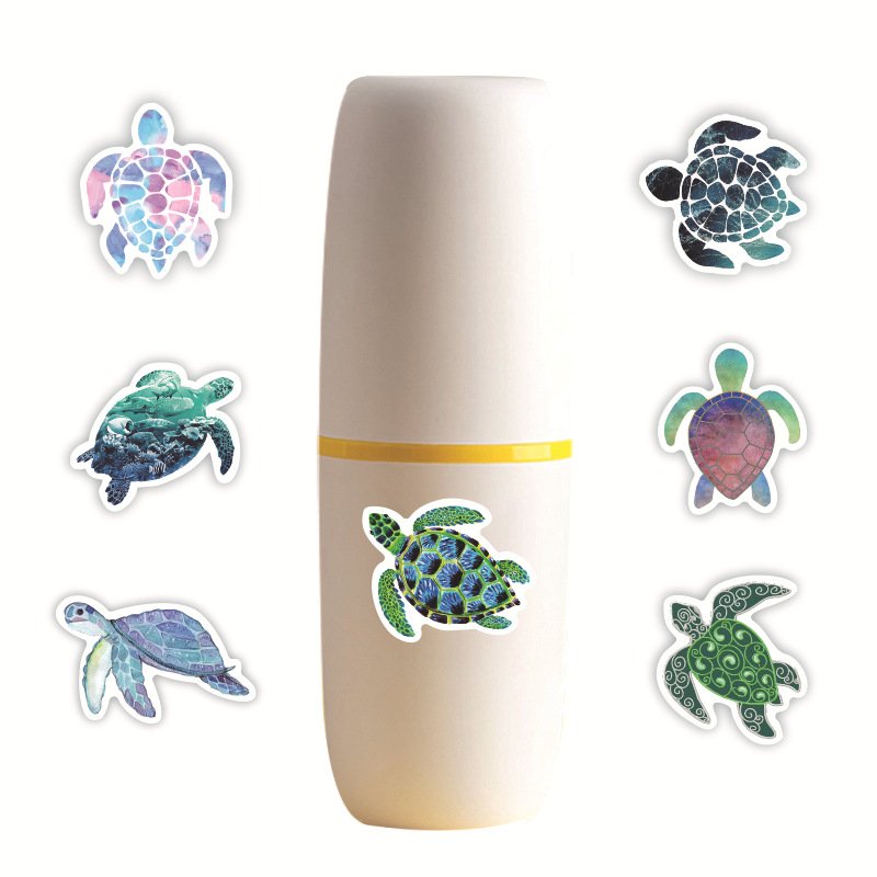 50张/包海洋生物卡通海龟贴水杯行李箱文具笔记本防水哑膜贴纸