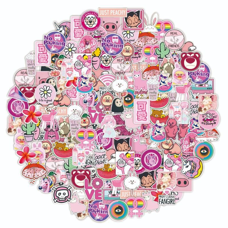 50张/包粉色少女系行李箱旅行箱可爱卡通二次元贴纸电脑滑板贴纸