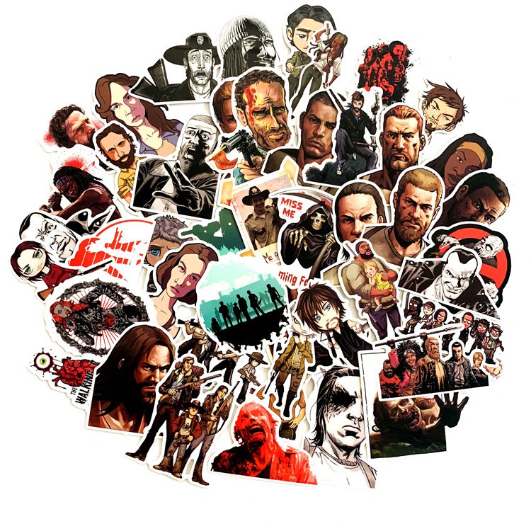 50张/包美剧惊悚行尸走肉卡通涂鸦贴冰箱滑板电动车个性PVC贴纸