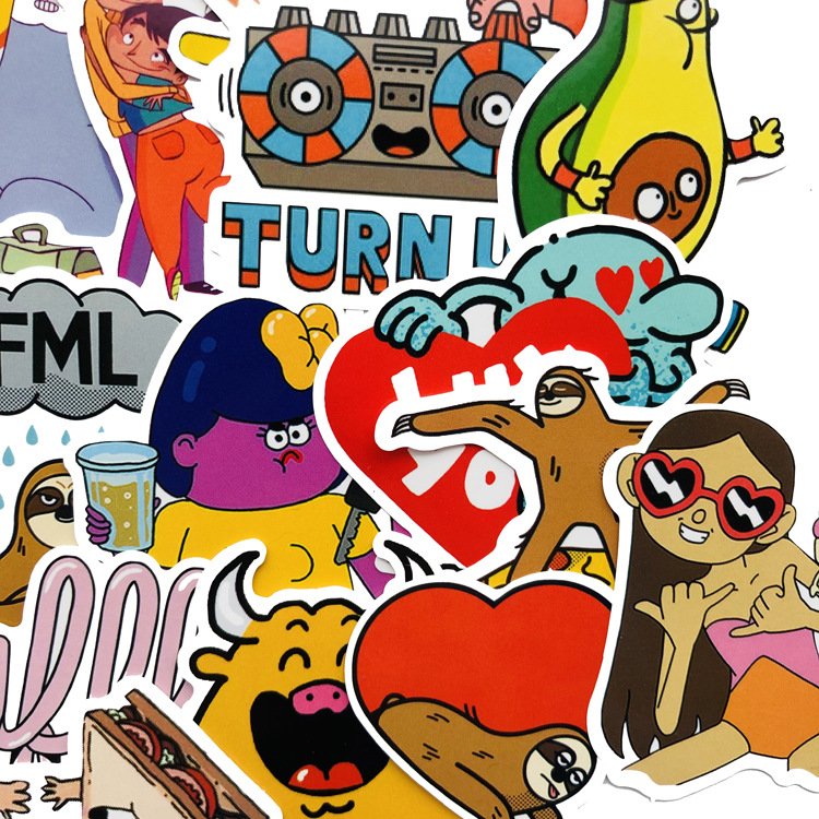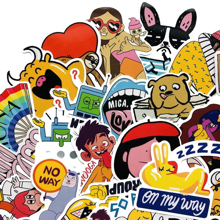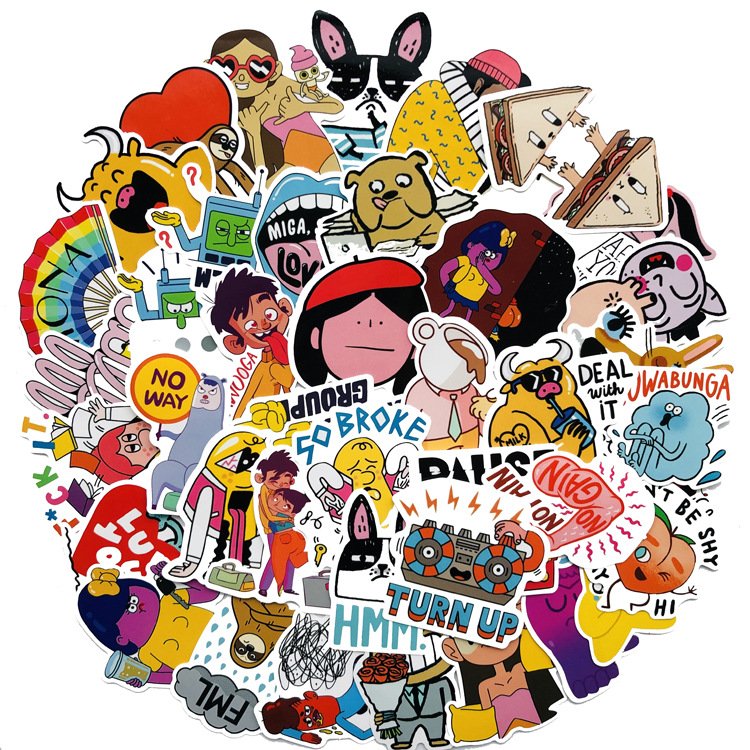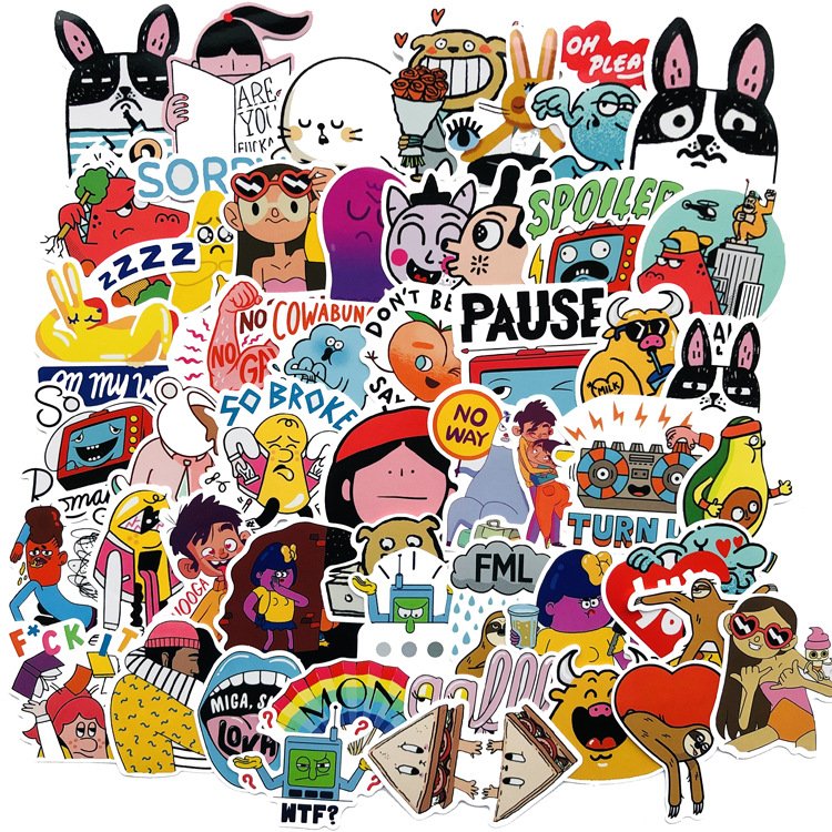 50张/包趣味涂鸦贴纸可爱卡通行李箱旅行箱笔记本手机电脑贴纸