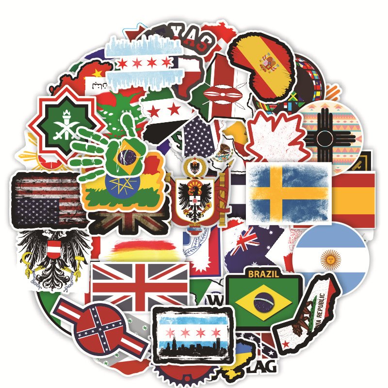 52张/包地图国旗不重复涂鸦贴行李拉杆箱笔记文具创意个性防水贴